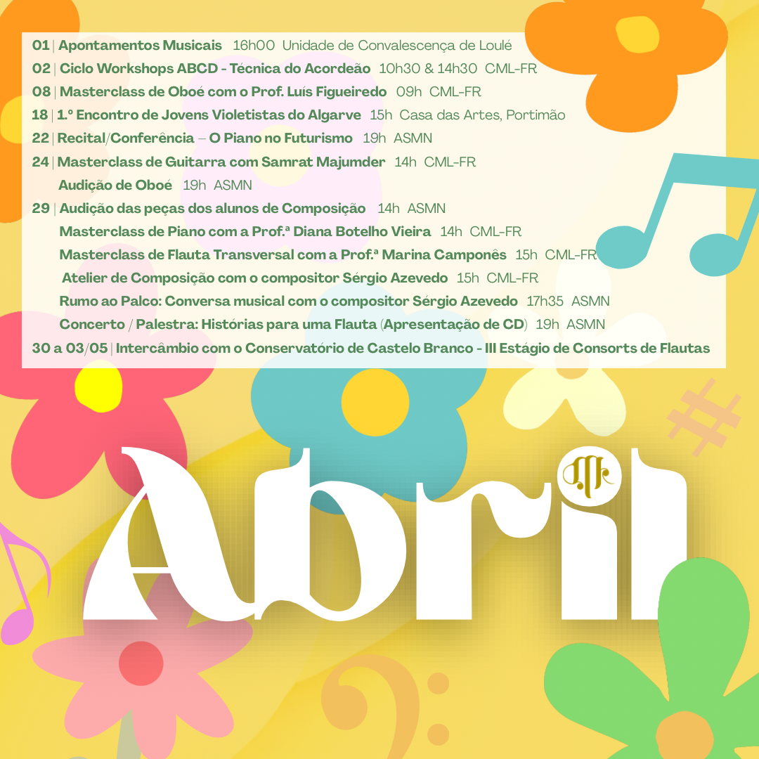 Venha assistir às atividades de abril…
