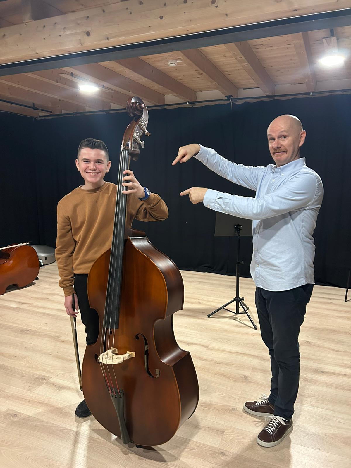 No passado dia 8 de novembro, durante a manhã, nas instalações da Mákina de Cena, o Conservatório de Música de Loulé – Francisco Rosado recebeu o Professor Antal Papp, contrabaixista dos Zagreb Soloists e docente na Zagreb Academy of Music, para uma inspiradora masterclass de contrabaixo. Os alunos tiveram a oportunidade de trabalhar individualmente com o professor, explorando aspetos técnicos e musicais do instrumento num ambiente de grande empenho e partilha artística. A atividade constituiu uma valiosa experiência pedagógica, reforçando o compromisso do Conservatório com a excelência no ensino e a ligação à prática internacional.