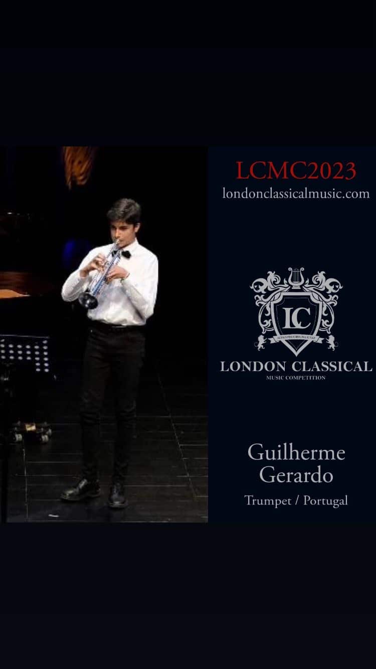 PARABÉNS ao aluno GUILHERME ROMÃO, Trompete, 9.º ano, pelo recente prémio “Gold Prize” atribuído pelo concurso “London Classical Music Competition” – categoria “Young Artist – age 15 & under”.