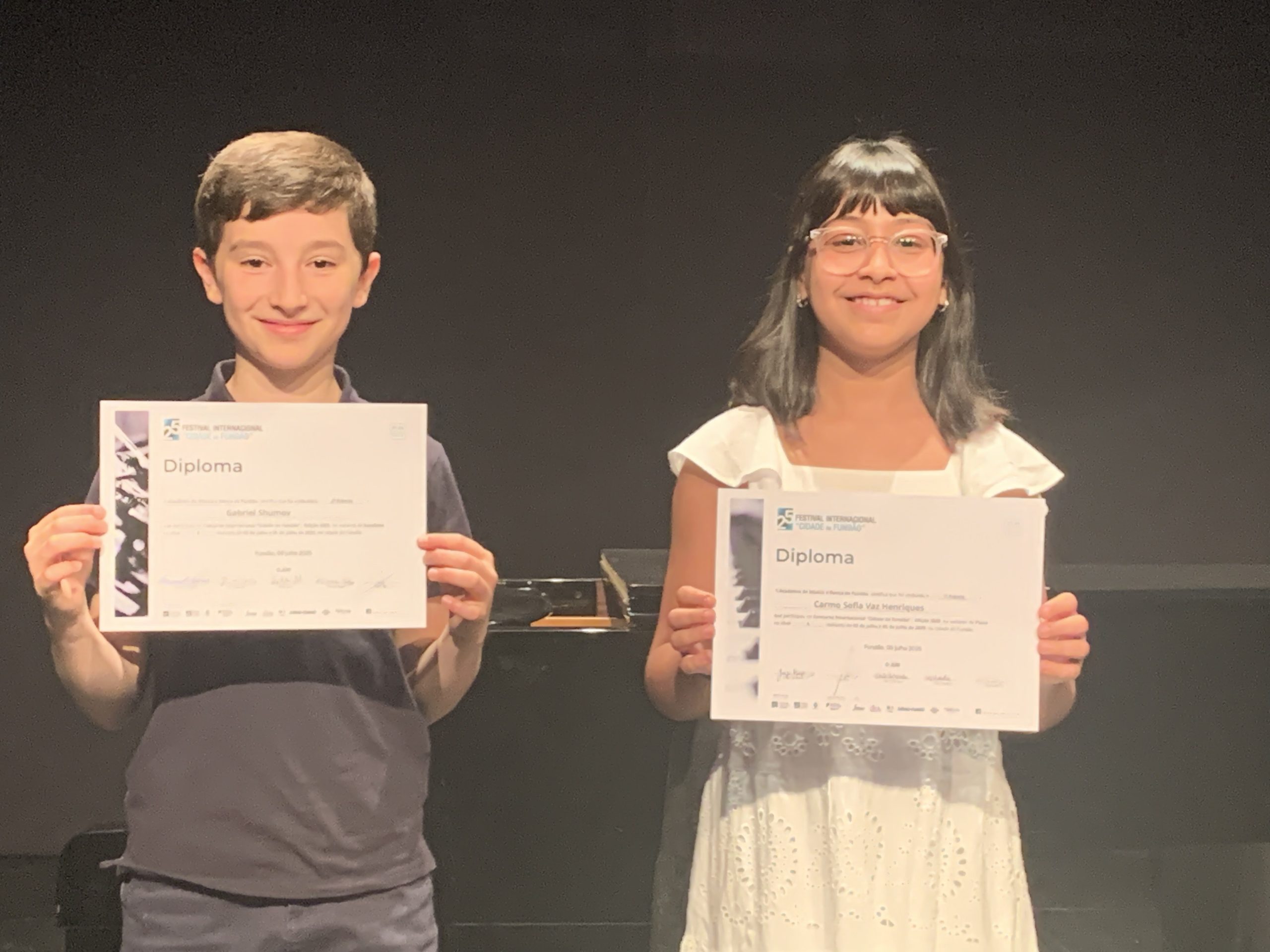 Parabenizamos os alunos Carmo Henriques e Gabriel Shumov, bem como os seus respetivos professores, Joana Shumova e Carlos Ramalho, pelos resultados alcançados. Expressamos também o nosso agradecimento aos Encarregados de Educação pelo apoio contínuo, que contribui significativamente para o desenvolvimento musical, pessoal e artístico dos seus educandos.