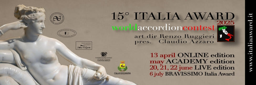 O 15º Itália Award 2025, é um Concurso Mundial organizado pelo diretor artístico e acordeonista Italiano Renzo Ruggieri, e como presidente Cláudio Azzaro, que integra três concursos, o primeiro Online realizado a 13 de maio, Edição Live entre 20,21 e 22 de junho e o Bravíssimo a 6 de julho.