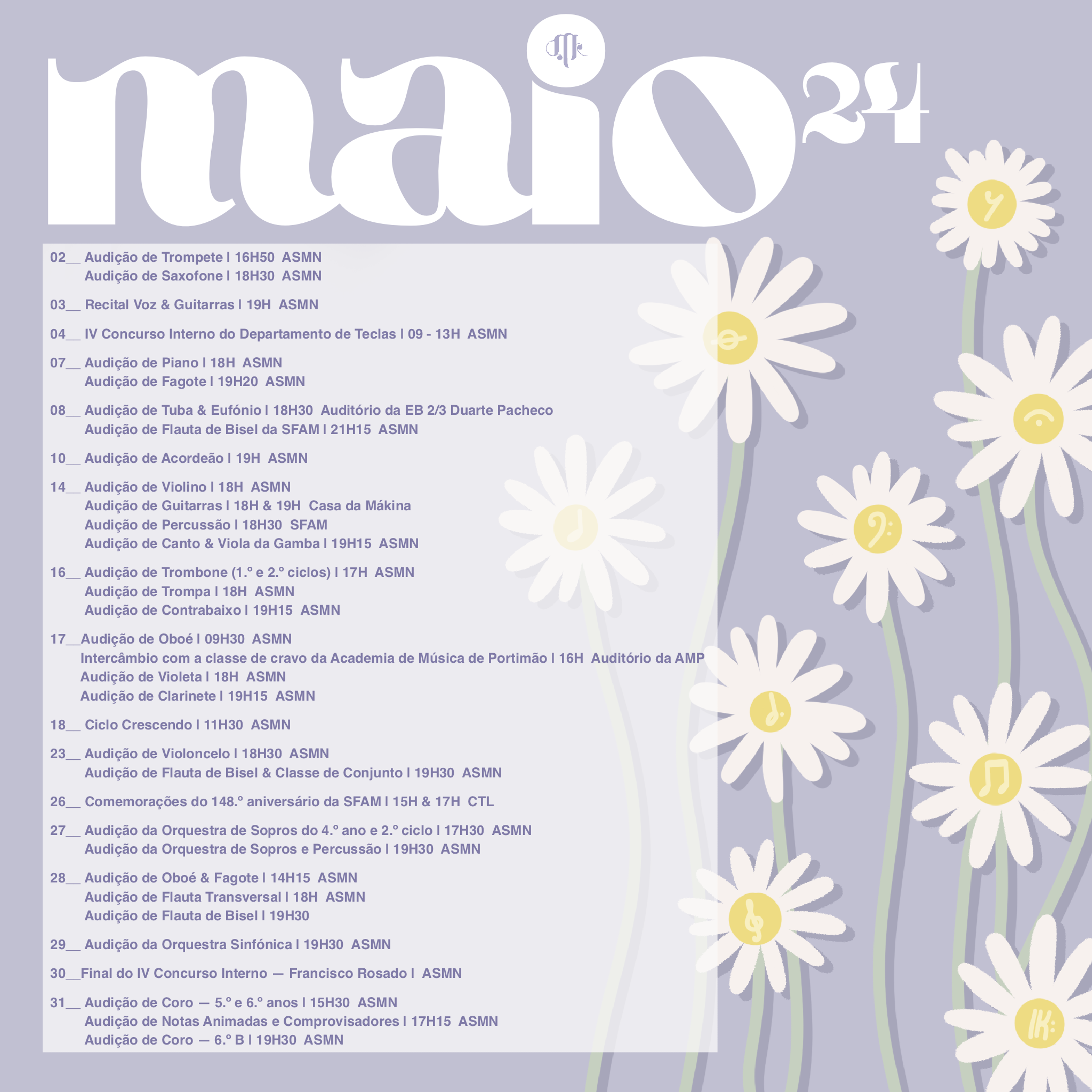 Em maio oferecemos muitas oportunidades musicais… Contamos com a sua presença nas nossas atividades!