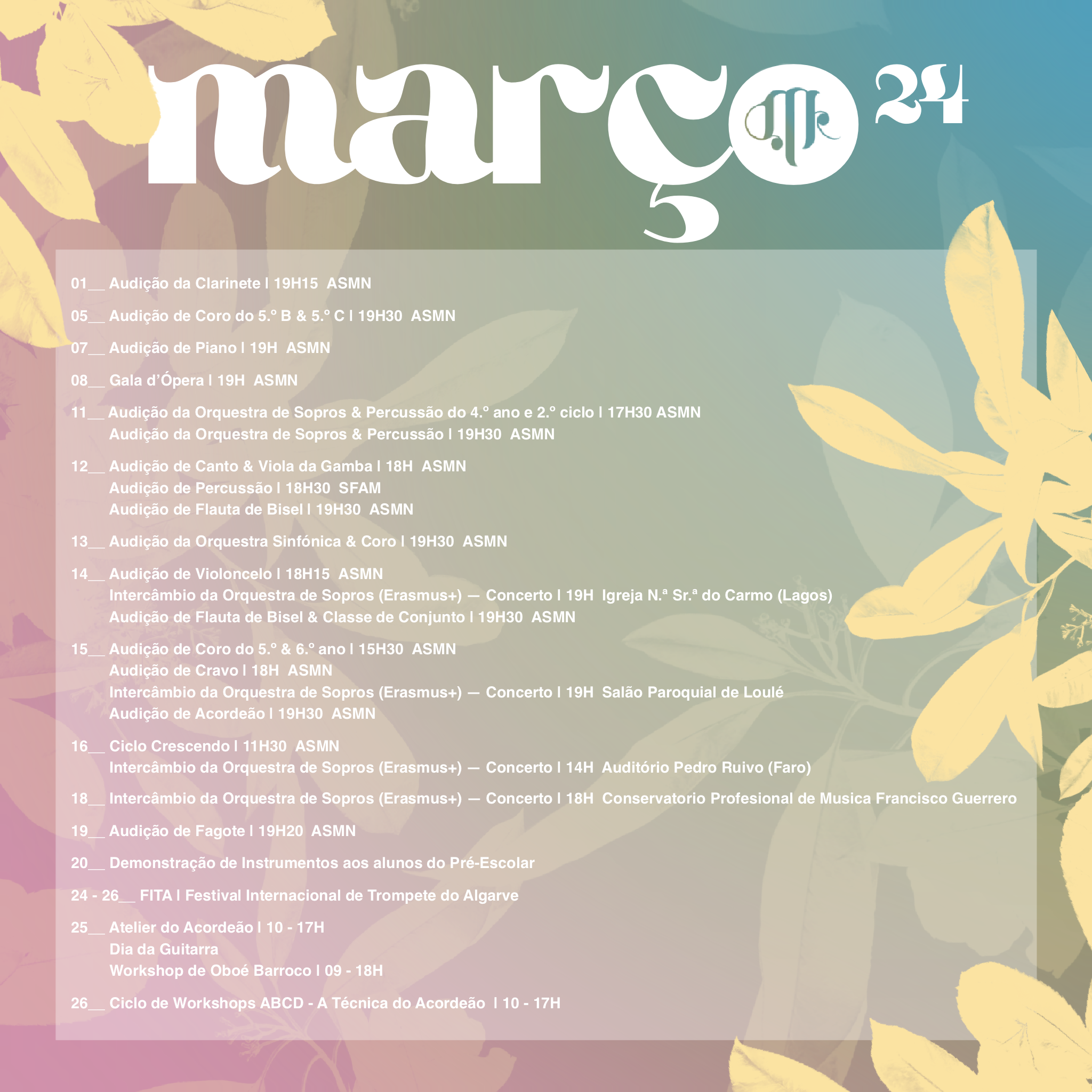 Em março aproveite esta primavera musical! Contamos com a sua presença nas nossas atividades…