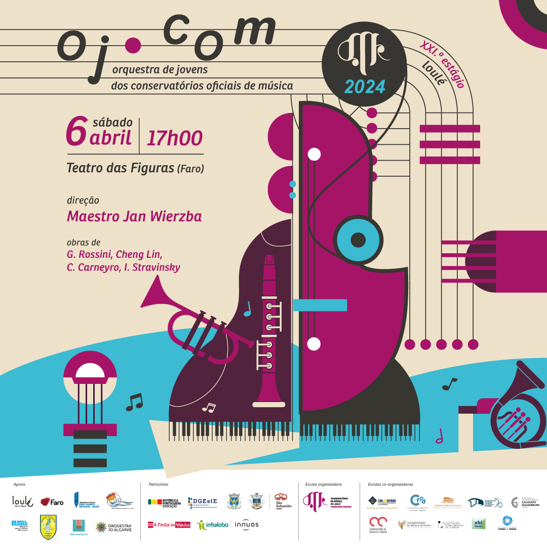 No próximo dia 6 de abril de 2024, pelas 17h00, no Teatro das Figuras, em Faro, terá lugar o concerto da Orquestra de Jovens dos Conservatórios Oficiais de Música públicos (OJ. COM), cuja organização nesta sua edição de 2024 ficou à responsabilidade do Conservatorio de Música de Loulé – Francisco Rosado.