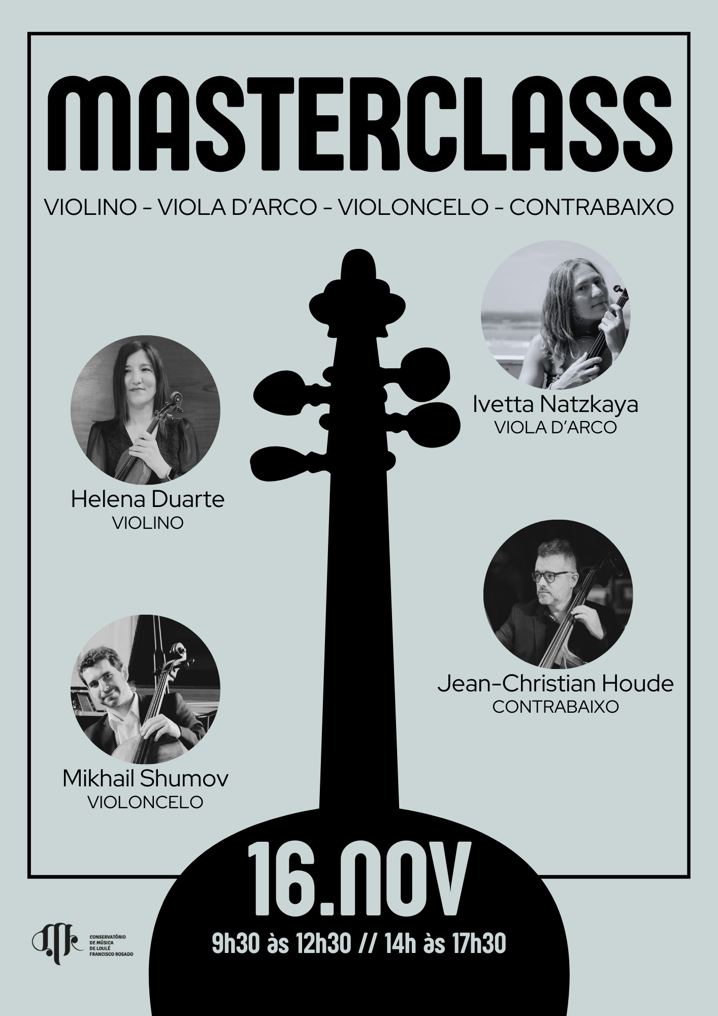 Masterclass de Cordas com os Professores Helena Duarte (Violino), Ivetta Natzkaya (Viola d’arco), Mikhail Shumov (Violoncelo) e Jean-Christian Houde (Contrabaixo).