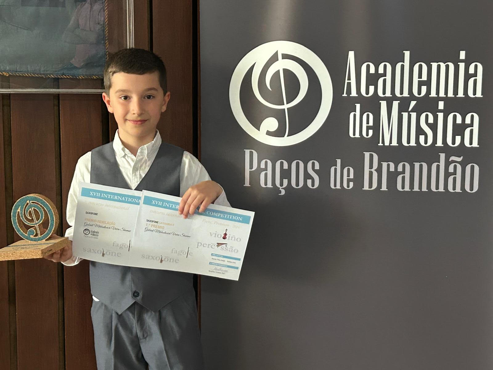 É com orgulho que informamos que o aluno Gabriel Shumov foi laureado com o 1.º Prémio na Categoria E do concurso, sendo também agraciado com o Prémio Revelação, atribuído a um candidato de entre todas as categorias a concurso na vertente de Saxofone. Parabéns ao Gabriel Shumov, aluno da classe de saxofone do professor Carlos Ramalho!