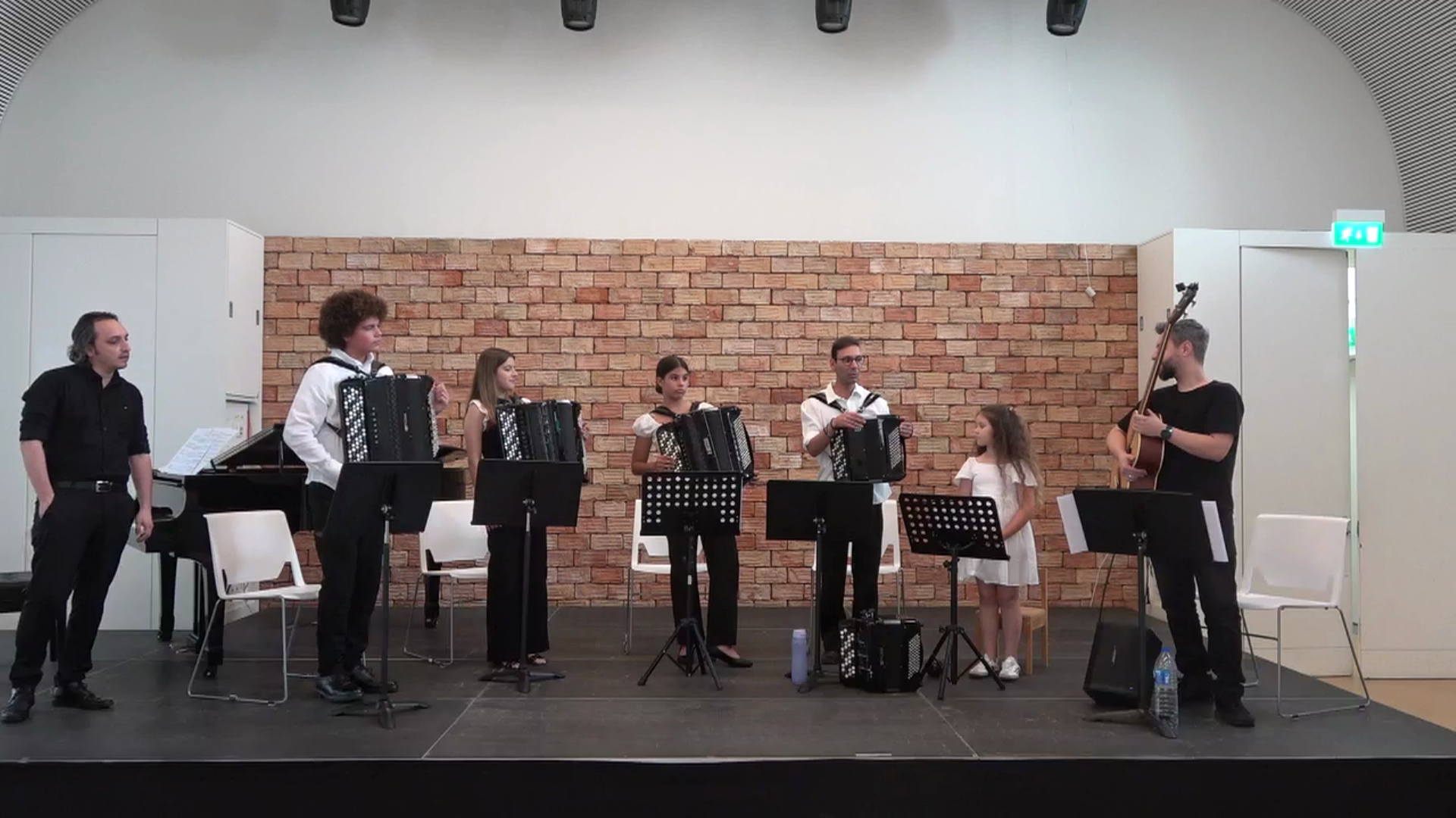 O ponto alto deste estágio foi no último dia, com o concerto de encerramento no ASMN que juntou alunos classe de acordeão, o professor de acordeão Vítor Mira e dois convidados: professor Andrés Ruiz (piano) e professor João Venda (guitarra).