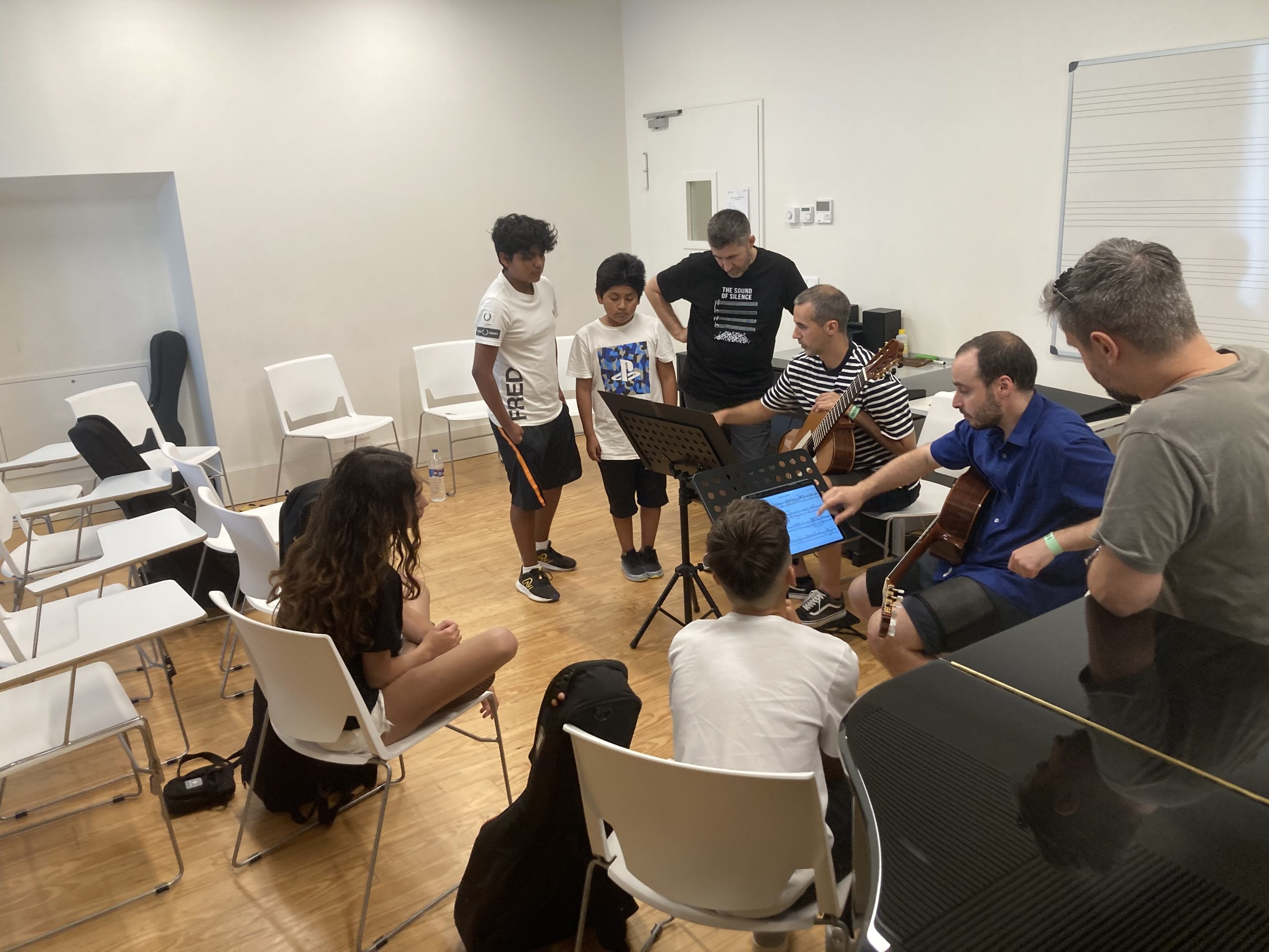Após o fantástico concerto realizado a 27 de junho no MED Classic, em Loulé, no qual interpretaram as obras de Hans Werner Henze (Minette. Canti e rimpianti amorosi per due chitarre) e Helmut Lachenmann (Salut für Caudwell. Musik für zwei Gitarristen ), Gil Fesch e Nuno Pinto dinamizaram, no passado sábado, 28 de junho, no Conservatório de Música de Loulé – Francisco Rosado, uma inspiradora masterclass dedicada à exploração de técnicas expandidas na guitarra clássica. O trabalho dos formadores destacou-se pela qualidade pedagógica e pela partilha de abordagens inovadoras, cativando todos os participantes.